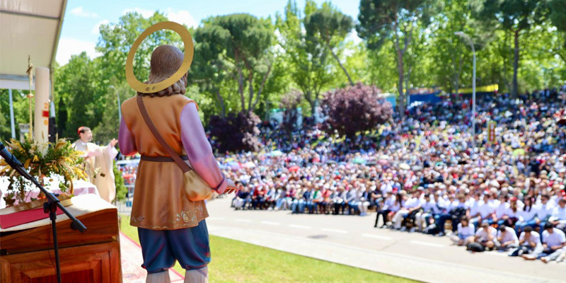 Miles de familias con niños, con esa mezcla de culturas que es ya la ciudad de Madrid, hacen un alto en el camino para bailar un chotis o hacerse una foto con el traje típico castizo. Hay quien se queda en los alrededores disfrutando de la fiesta, quizá sin recordar que festejamos al patrón de la capital, a un hombre santo, un marido santo, un agricultor sencillo que recuerda que todos estamos llamados a la santidad.