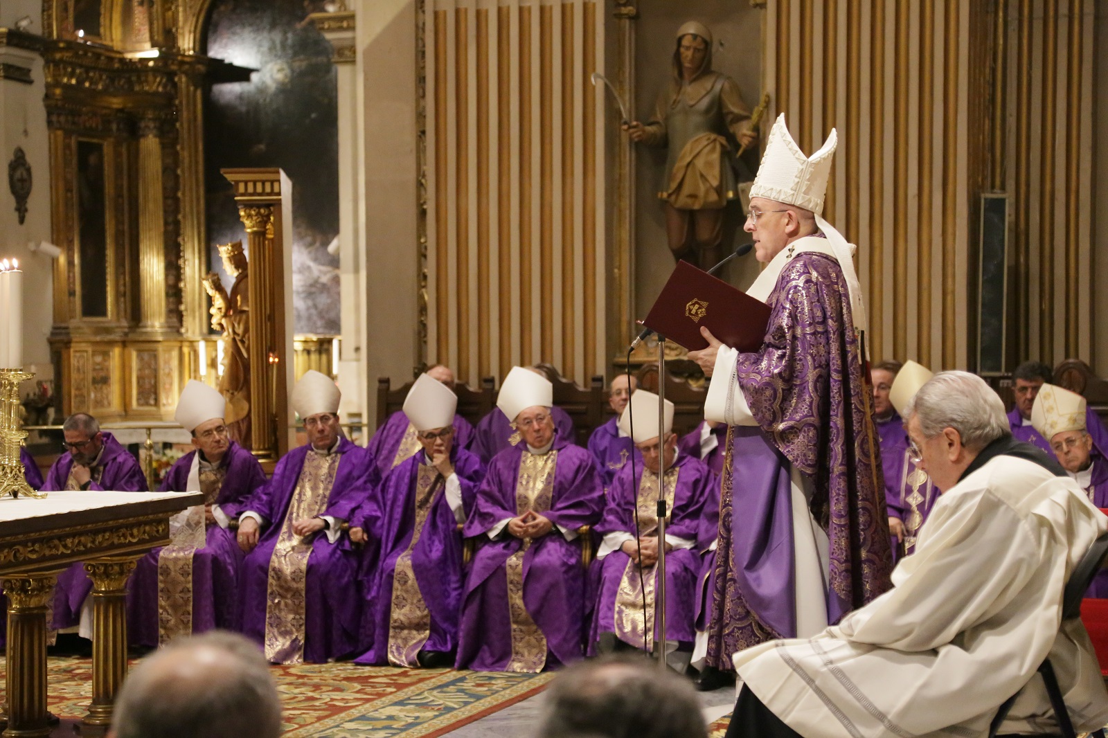 La Colegiata de San Isidro ha acogido este lunes por la tarde el funeral por el alma de monseñor Alberto Iniesta, obispo auxiliar emérito de la archidiócesis de Madrid, fallecido en su diócesis natal de Albacete el domingo 3 de enero. Acompañado, entre otros, por el cardenal arzobispo de Valladolidad y presidente de la Conferencia Episcopal Española, monseñor Ricardo Blázquez; el obispo de Albacete, monseñor Ciriaco Benavente; el obispo auxiliar de Madrid, monseñor Juan Antonio Martínez Camino; el arzobispo castrense, monseñor Juan del Río; el arzobispo de Burgos, monseñor Fidel Herráez; el arzobispo de Granada, monseñor Javier Martínez; el arzobispo de Toledo, monseñor Braulio Rodríguez; el obispo de Segovia, monseñor César Franco; el cardenal arzobispo emérito de Sevilla, monseñor Carlos Amigo; el secretario general de la Conferencia Episcopal Española, José María Gil Tamayo; los vicarios episcopales y numerosos sacerdotes, el arzobispo de Madrid, monseñor Carlos Osoro, ha presidido el funeral del que fuera obispo auxiliar de la archidiócesis entre 1972 y1998.