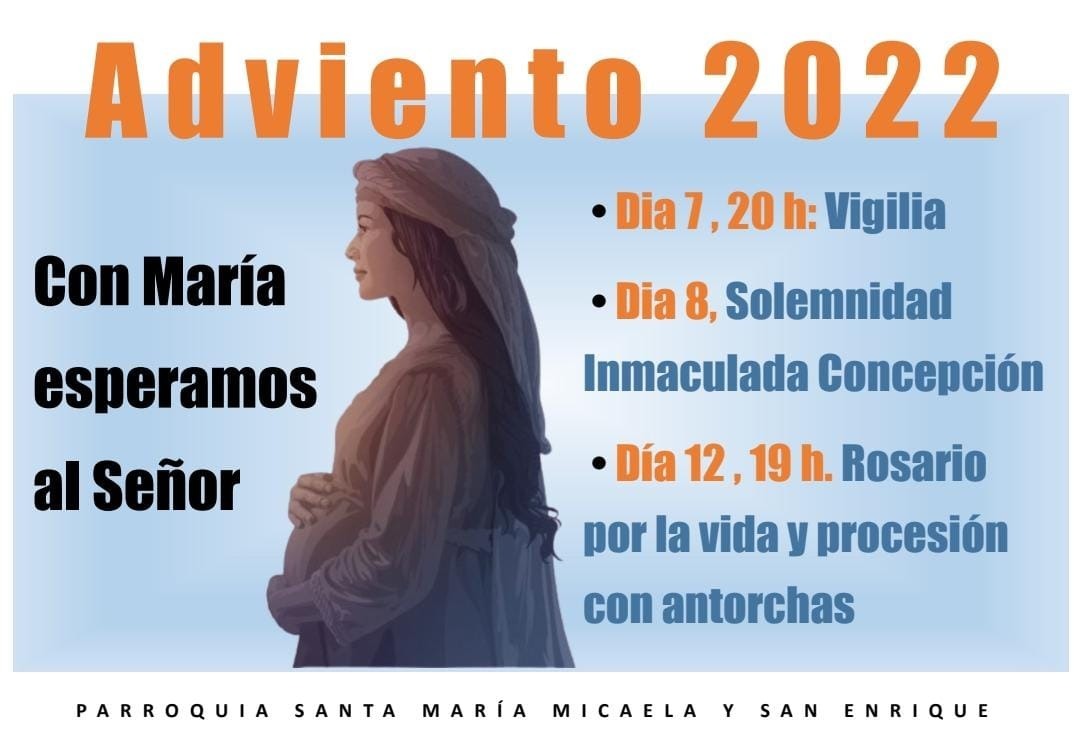 - Santa María Micaela. La celebración d ela Inmaculada se enmarca en los días de Adviento dedicados a la Virgen. La parroquia celebrará una vigilia el día 7 a las 20:00 horas y continuará con la solemnidad de la Virgen, el día 8.
